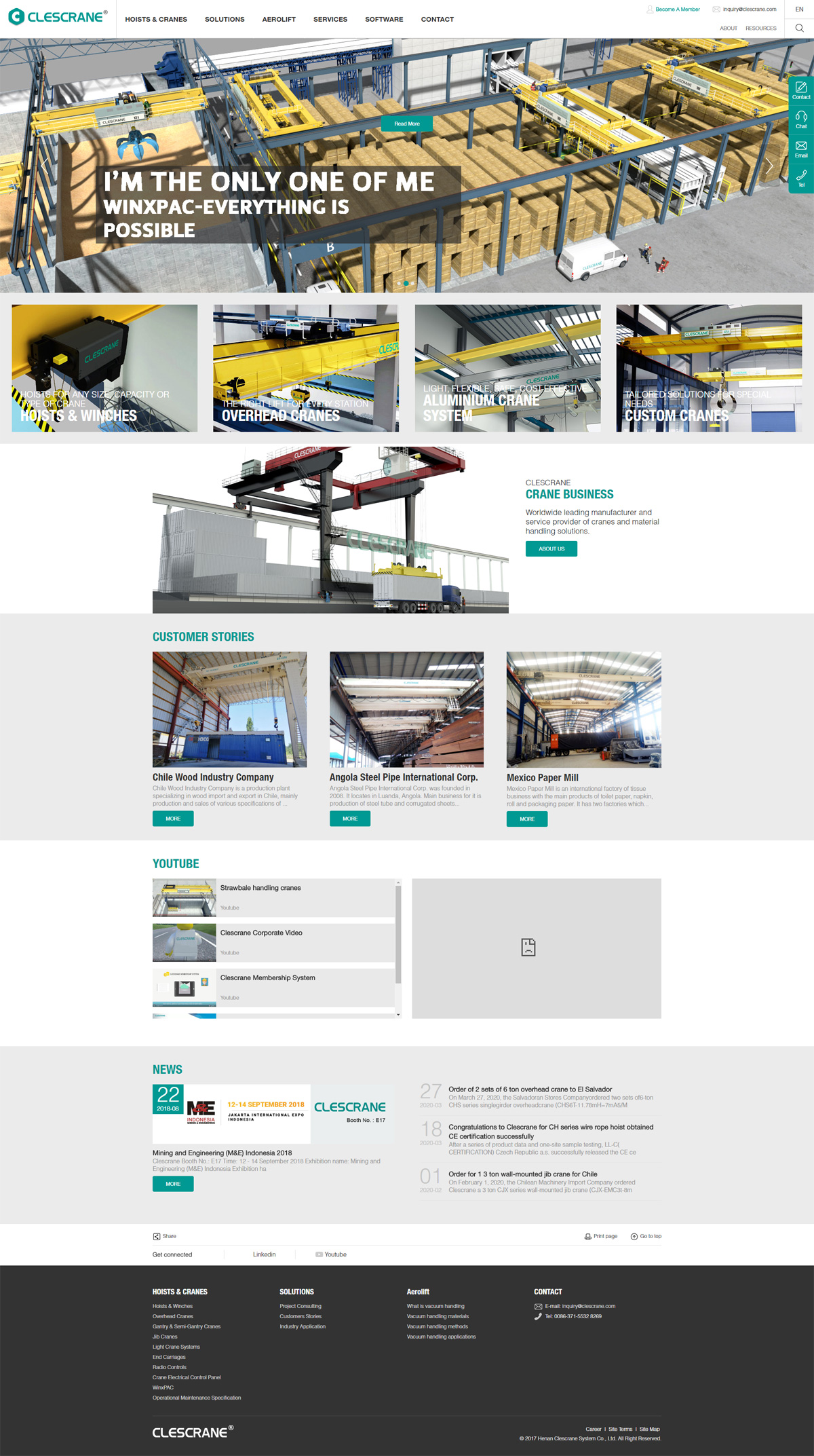 在中國,有超過8000萬的經(jīng)濟(jì)主體,平均每3秒就有一家企業(yè)誕生,每10秒就有一家企業(yè)消亡。每天,都有大量的創(chuàng)業(yè)者懷揣著夢想上路,如何成就他們的夢想,正是克勒斯為之努力的方向。克勒斯是純出口型起重機(jī)設(shè)備貿(mào)易企業(yè),擁有員工3000余人,為全球150個(gè)國家的不同的行業(yè)的不同客戶提供同樣優(yōu)質(zhì)的設(shè)備和服務(wù)。企業(yè)建立專業(yè)的質(zhì)量管理團(tuán)隊(duì),保證每一個(gè)產(chǎn)品和每一個(gè)零件的核心質(zhì)量。我們堅(jiān)持我們的理念并不斷創(chuàng)新,不斷向上。